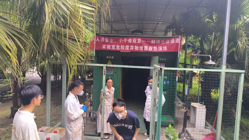 为提升师生应对危险废物泄漏的应急处置能力,筑牢校园安全防线,2025年6月12日,四川轻化工大学国有资产与实验室管理处在汇东校区危险废物收集中转站组织开展了实验室危废泄漏应急演练。相关师生骨干参与演练,通过模拟真实场景,锻炼实战能力。